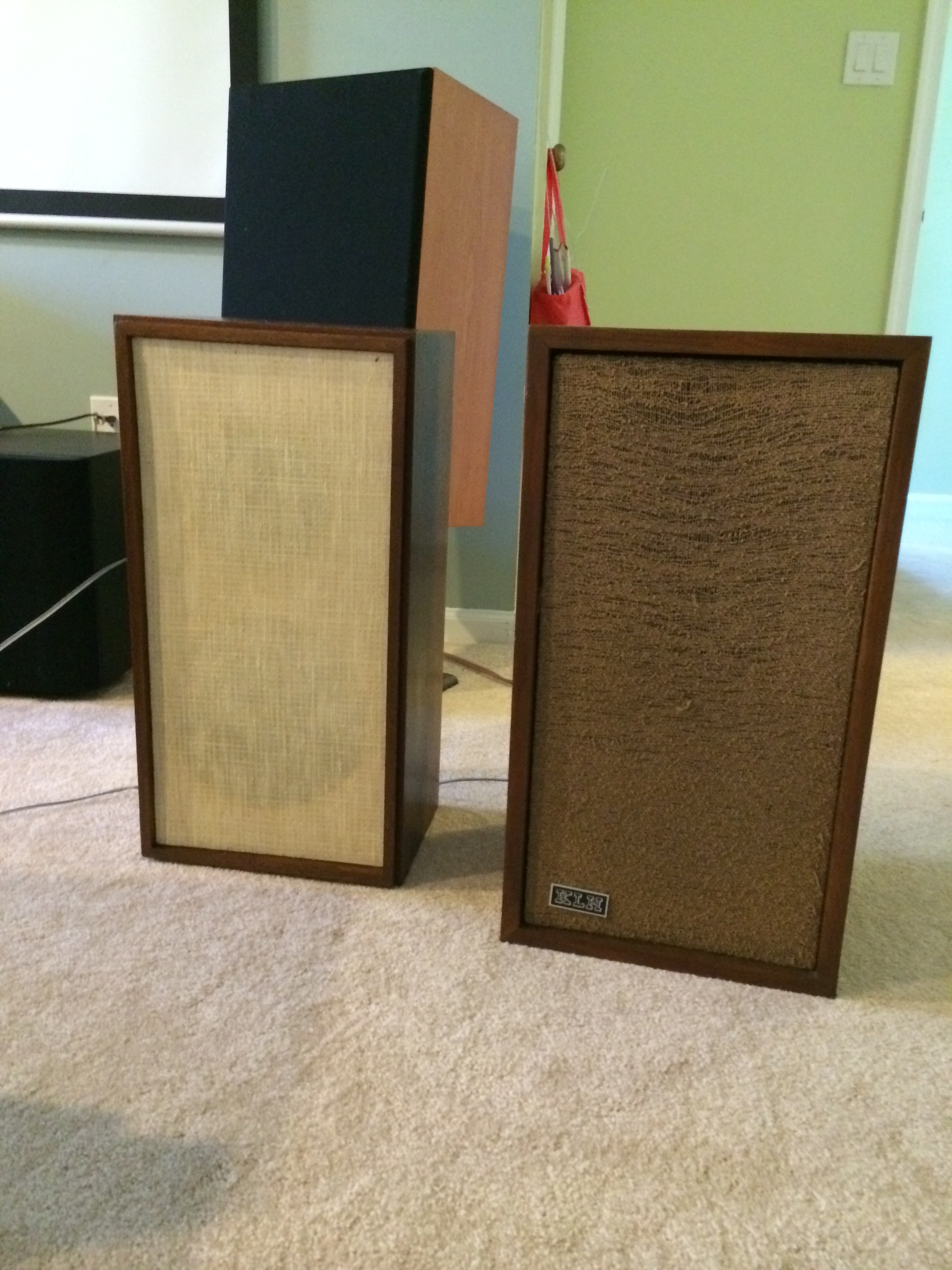 A few months ago, I found these sad KLH 20 speakers in the corner of an almost cleaned-out estate sale. All of someone’s worldly possessions were being distributed to the neighborhood curious, one by one.